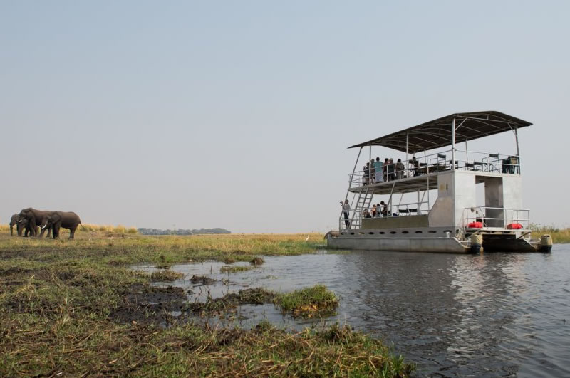 Chobe Game cruise includes a chobe sundowner cruise down the Chobe River and view the wildlife, including numerous bird species, as you drift slowly down a side channel, where the silence is only broken by bird calls. From the comfort of your boat view mighty elephant, giraffe, hippo and other wild animals returning to the Chobe River to quench their thirst.