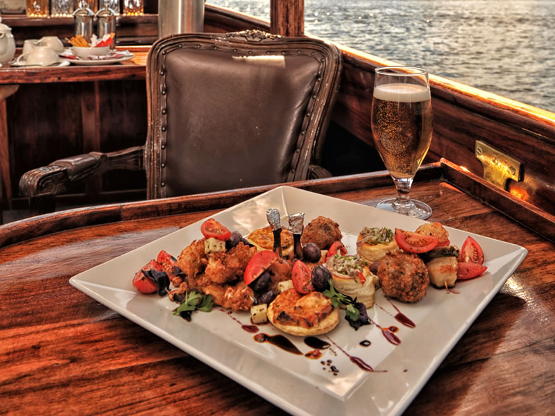 On this cruise the guests are welcomed with a cocktail on the boat whilst given a safety talk and a brief history of the river on the outset of the trip. Whilst on the cruise the guests are offered drinks from the fully stocked bar and a range of mouth-watering snacks.